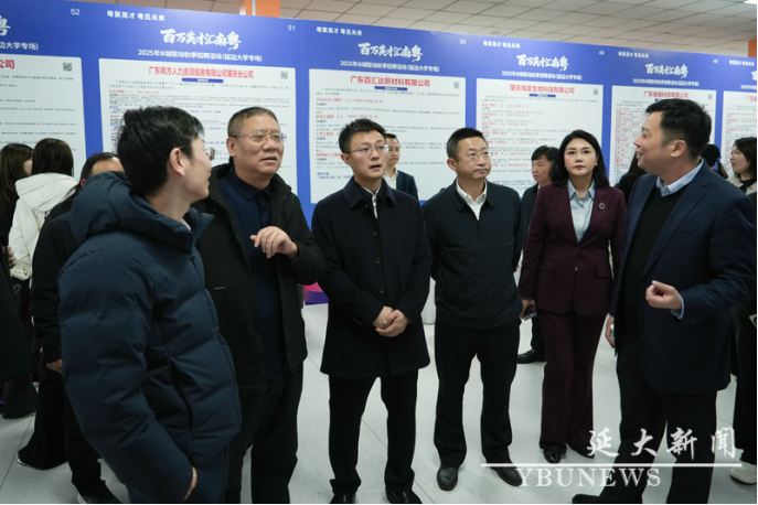 10月21日,肇庆市携卫生健康系统公立医疗卫生机构及重点企业来到我校,开展“百万英才汇南粤”2025年N城联动秋季招聘活动(延边大学专场)。校党委副书记于金欢、广东省人力资源和社会保障厅二级巡视员黄明、肇庆市副市长严宏宇出席活动。