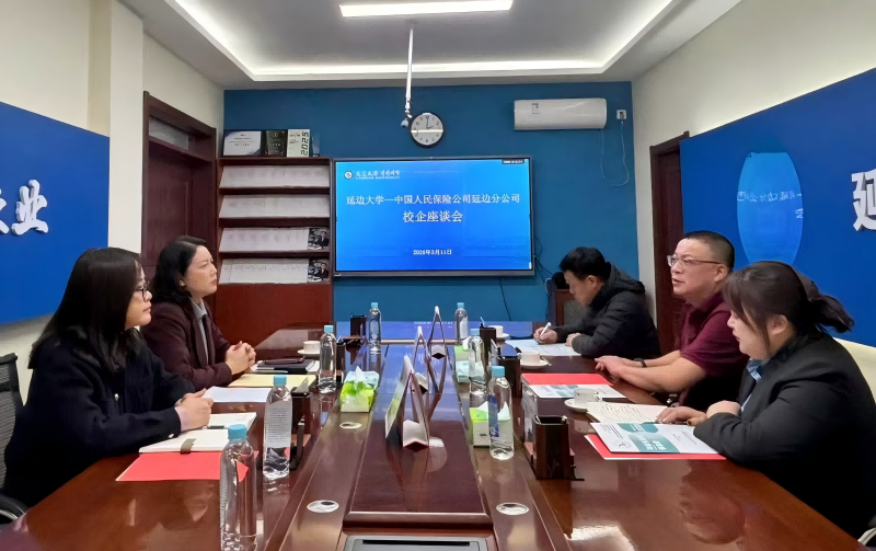 3月11日,中国人民财产保险股份有限公司延边分公司一行来我校开展校企座谈会。中国人民财产保险股份有限公司延边分公司总经理毕胜,延边大学招生就业处处长金鸿雁出席座谈。